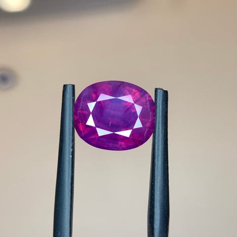 1 naturlig rubin, 2,60 ct, oval brillantkløvning, rød, gennemsigtig, øje-rent, fra Myanmar/Birma, ingen varmebehandling, ingen tegn på behandling, skæringsgrad Excellent, GRS-rapport nr. GRS2024-072265. Klik på den blå "gå til varen" knap, for at købe eller byde på denne vare. Den samlede pris vil blive vist inden du afgiver dit bud.