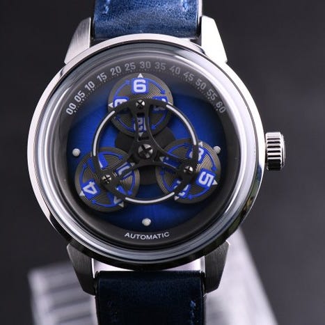 La Magma-01 est une pièce contemporaine signée AKOR, dotée d’un affichage alternatif surnommé “Heure Magique” : trois disques chiffrés effectuent une rotation à 360° sous un pont central, offrant une lecture ludique et mécanique de l’heure.