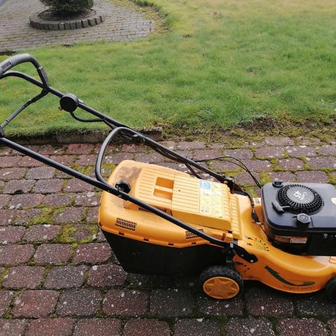 Stiga plæneklipper med benzindrevet motor. Virker ikke p.t men kørte upåklageligt sidste sæson.