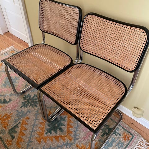 Flot velholdt frisvingen Spisebord stol med fransk flet. Bauhaus-stil, senere del af det 20. århundrede, Made in Italy