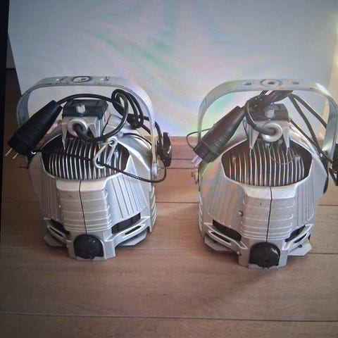 Jeg sælger vores scene-/teater spotlight med ben og en 70 W halogenpære.