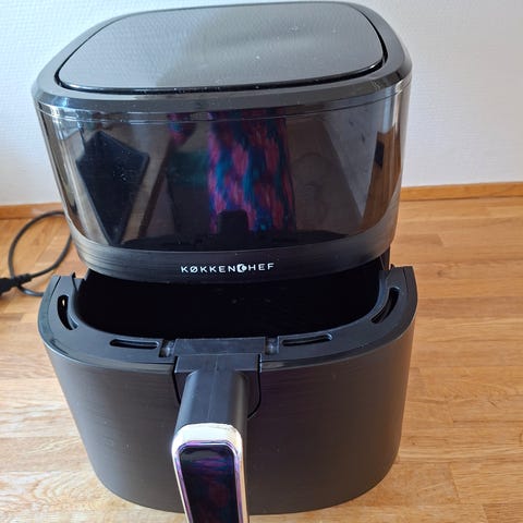 House of chefs airfryer med dobbelt skuffe i sort. Modellen har to separate kurve, som gør det muligt at tilberede forskellige typer mad samtidig. Fronten har digitalt display og betjeningspanel øverst. Kurvene er udtagelige for nem rengøring. Velegnet til tilberedning af f.eks. pommes frites, grøntsager, kød og snacks med mindre brug af olie end ved traditionel friturestegning.
