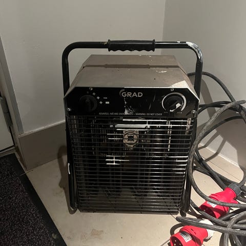 VEAB EN 9 varmeblæser med effekt på 9 kW. Enheden er trefaset 400 V / 32 A og er udstyret med fast monteret kraftkabel og CEE-stik. Frontgitter beskytter varmelegemet, og der er betjeningspanel med kontakt og temperaturregulering på fronten. Velegnet til opvarmning af fx værksted, garage eller andre mindre lokaler, hvor der er adgang til 400 V strømforsyning.