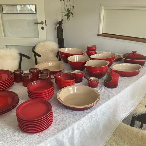 Le Creuset stel sort og beige stentøj
