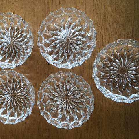Glas, Fad og 1o Isassietterkrystal, Prisme, Sælges samlet fad i diameter 27 cm isassietterne 15 cm i diameter