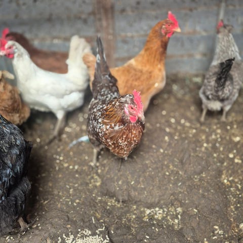 4 stk Sussex Høns i hvid/sort farve. 2 1/2 år. Velegnet som havehøns til æglægning eller hobbyhold.