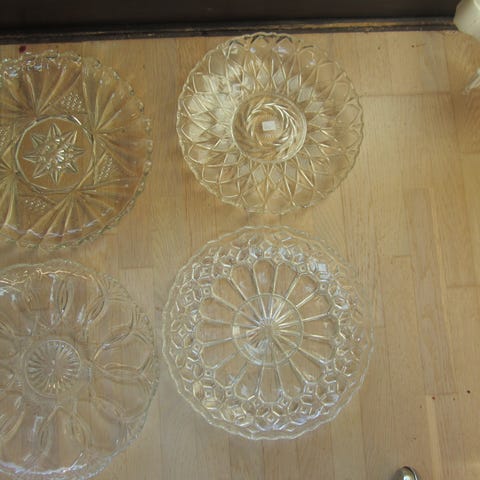 Lagkage glasfade, ., 2 flotte glas lagkagefade i flotte mønstre. 28 cm i diameter. Sælges gerne samlet for prisen