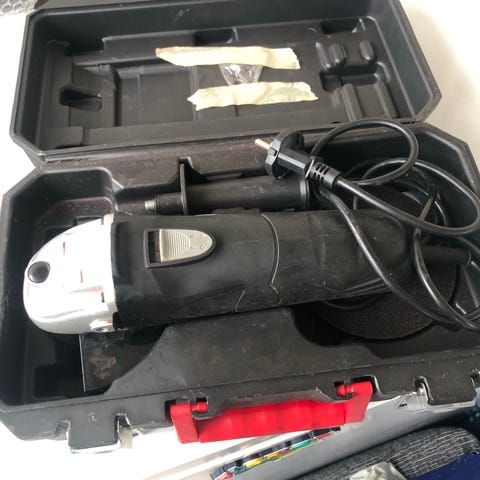 Nakachi båndsliber på stativ. El-drevet båndslibemaskine monteret på metalstativ, egnet til slibning og tilpasning af træ og andre materialer i værksted eller garage. Maskinen har integreret motorenhed og arbejdsbord samt strømtilslutning på siden. Velegnet som stationær slibemaskine til gør-det-selv-arbejde og mindre håndværksopgaver.
