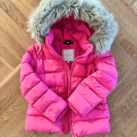 Vinterjakke, Dunjakke, Tommy Hilfiger, str. 164, Flot blå dunjakke med aftagelig hætte med pelskrave. Fejler intet