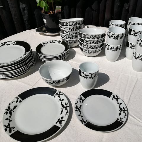 Porcelæn, Spisestel og kaffestel, Ukendt, Stellet har brugsspor, men ingen revner eller skår. Der er følgende:
