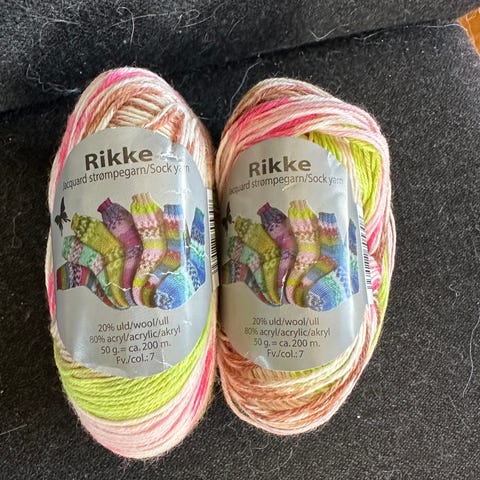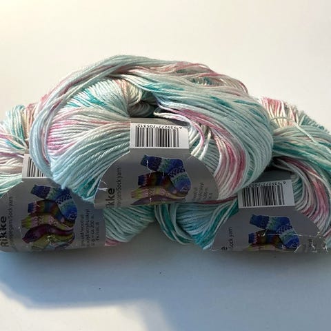 Farverne er hvid, lys limegrøn, lyseblå, pink og lilla.