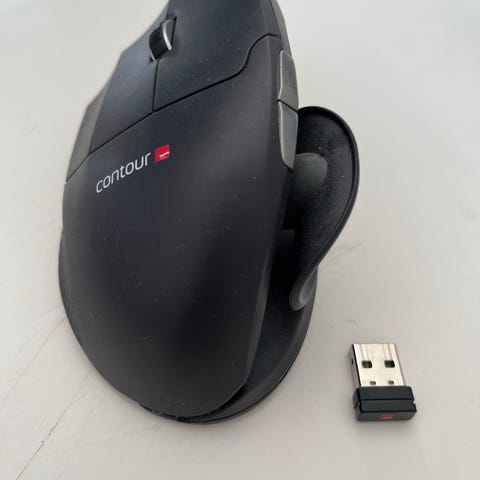 Digitus DA-20155 ergonomisk vertikal trådløs mus i sort. Musen er udformet i et vertikalt, ergonomisk design, der støtter hånden i en mere naturlig position. Den leveres med trådløs USB‑modtager og har knapper samt scrollhjul placeret til brug med højre hånd. Velegnet til brug med computer og bærbar, hvor der ønskes en ergonomisk museløsning.