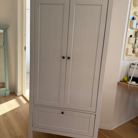 Flot ikeaskab inklusiv bøjler, kurveskuffer og belysning.