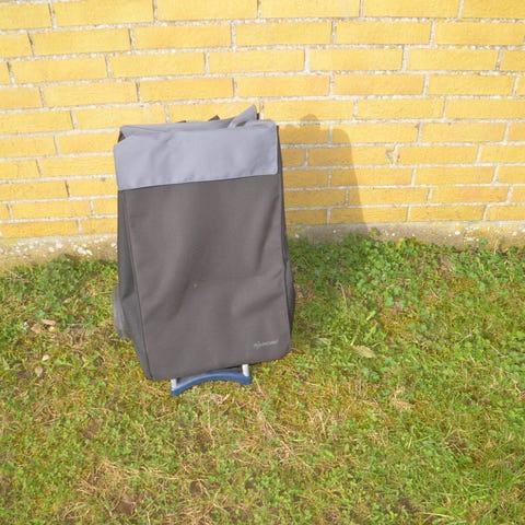 Indkøbsvogn på hjul i sort. Vognen har teleskophåndtag og to hjul, så den kan trækkes. Den er udstyret med stor hovedlomme samt yderlomme foran. Egnet til transport af indkøb og andre hverdagsting.
