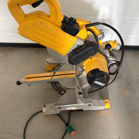 Vendbar kap-/geringssav/bord sav monteret på kombineret savbord og stativ. Er lidt slidt men du gerer efter hensigten (derfor den lave pris).