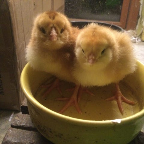 Daggamle kyllinger fra 26/3, sort, blå og spættet af olivenlæggere.