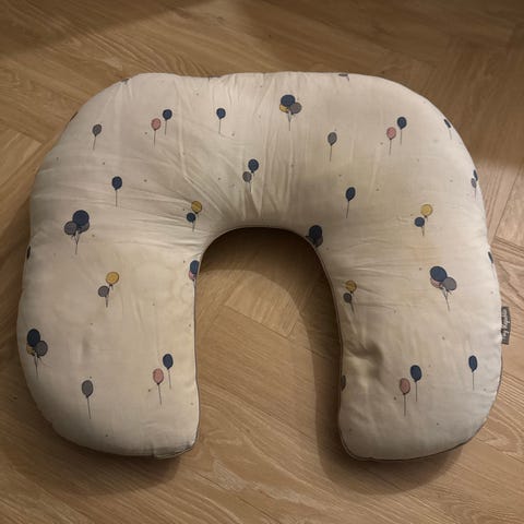 Helt ny Tiny Republic ammepude i C-form med betræk i bomuld i blå og hvid. Ammepuden er Oeko-Tex Standard 100-certificeret. Den ergonomiske C-form er designet til at give støtte under amning eller flaskegivning og til at hjælpe med en stabil og behagelig position for både barn og voksen. Velegnet til brug i sofa, stol eller seng.