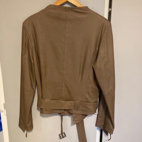 Sort kort let anderledes skind jakke m/ruskinds kant i str S fra Forrest & Bob