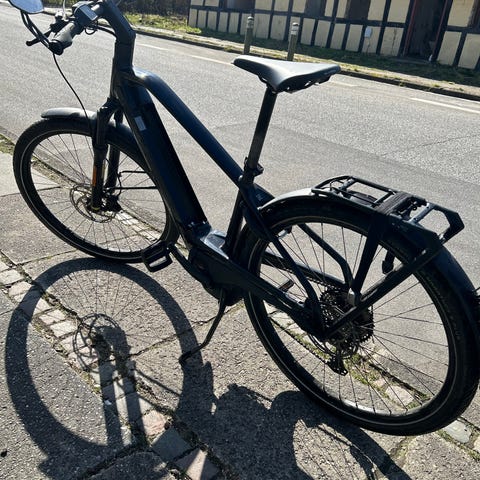 Cyklen er passet og plejet, har fulgt alle services og har netop 23/3-26 været til 3-års service, hvor også alle vigtige dele blev udskiftet, herunder hele drivlinjen (klinge, kæde, gearskifter og kassette). Den kører perfekt og der er således fortsat 3 års garanti fra Cykelexperten (ialt 6 års garanti). Der er selvsagt en grad af brugsspor som det ses på billederne, men de er minimale og kun kosmetiske. Der kan medfølge sort sidetaske.