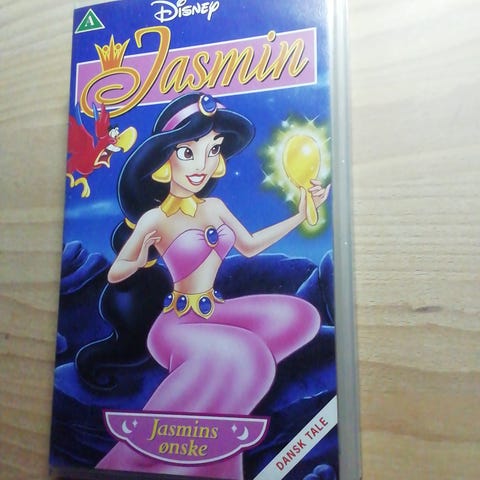 Disney Jasmin Den største skat VHS tegnefilm. Dansk udgave af tegnefilmen om prinsesse Jasmin. Kassetten er i VHS-format med originalt omslag på dansk. På bagsiden findes kort handlingsbeskrivelse og oplysninger om spilletid og aldersmærkning. Velegnet til VHS-afspiller og samlere af klassiske Disney-tegnefilm på videobånd.