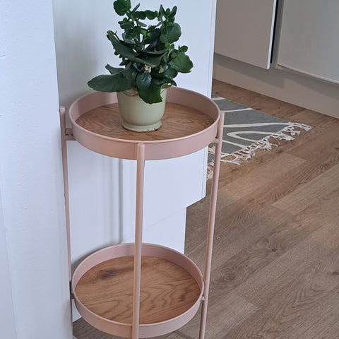 Small corner table in white/bamboo. Very light to carry and assemble. Unfortunately, I'm only selling it because I'm moving out. Dimensions: 40x40 cm