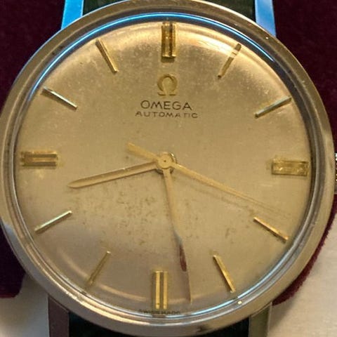 Uret er næsten uden brugsspor og det er aldrig blevet gået med. Det har stadig det originale Omega skilt på. Det er meget sjældent at finde disse snart 50 år gamle ure i NOS/New old stock. Jeg har også købt en tidstypisk original Omega boks med yderboks til