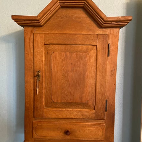 Smukkeste tobaksskab i egetræ sælges. Rigtig flot stand. Med tre hylder.