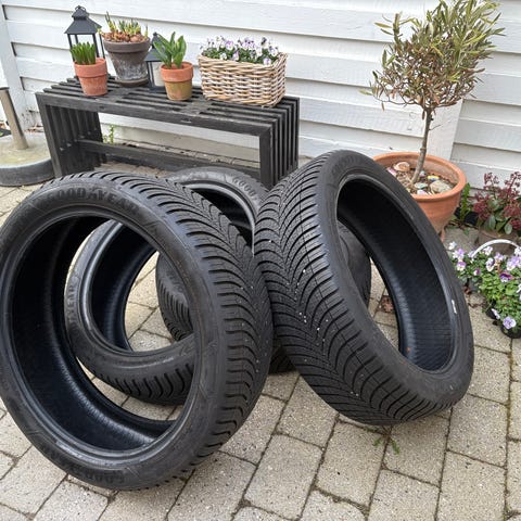 4 stk nye Goodyear Vector 4 seasons, koster 6000 kr, billigste sted på nettet, jeg sælger dem alle 4 for kun 1.600 kr. Er det alligevel for dyrt, så skal du se dig om efter nogle Linglong eller Goodride dæk til 500 kr pr stk helt nye.
