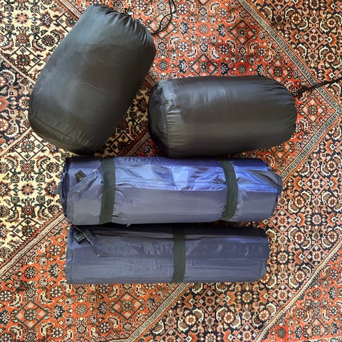 Selvoppusteligt liggeunderlag til brug som sove- og liggeunderlag, f.eks. til camping, teltture eller overnatning indendørs.