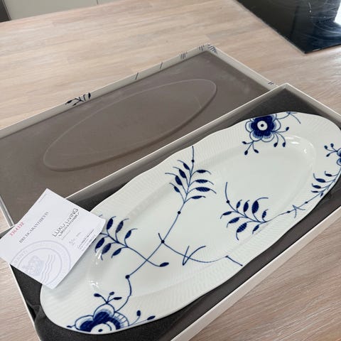 Royal Copenhagen Mega Mussel porcelænsfad rektangulært blå hvid