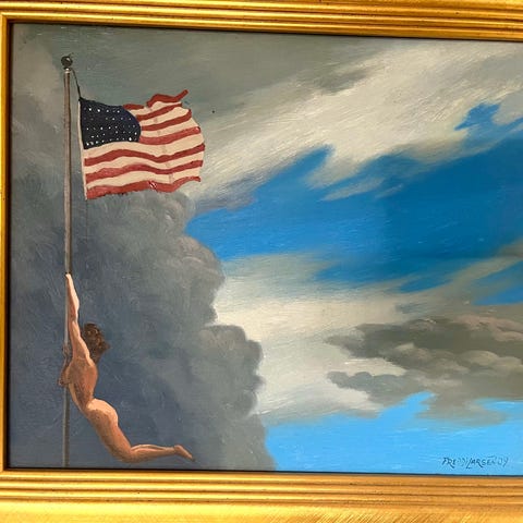 Oprørt hav. En lille perle i fantastiske farver fra Freddi Larsen’s hånd , 28x 24 cm . Hillerød