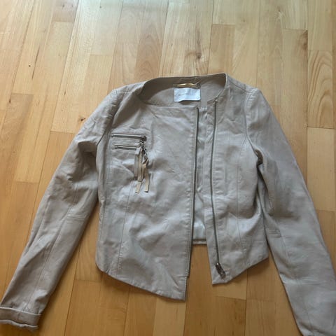 OBJECT HER-LOU læderjakke til kvinder i sort, størrelse M. Jakken er kort i modellen med længere stofpanel fortil og bagtil og detaljer ved ærmerne. Fremstillet i læder med glat overflade og indvendigt foer. Velegnet som yderlag over bluser, kjoler eller toppe i overgangsvejr og til hverdagsbrug.