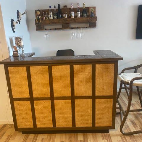 Hjemmelavet bar med ægte versace tapet. Mere haves skal selv sættes på.