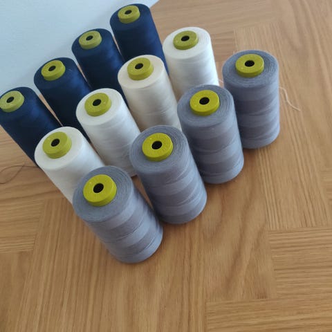 Div symaskine /overlock tråd I store cones. Forskellige tykkelse og kvaliteter. Mest polyester og lidt bomuld.
