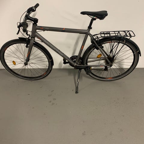 Kildemoes herre cykel til mænd med stelstørrelse L og 27,5" hjul. Cyklen har bagage kurv og 7 gear