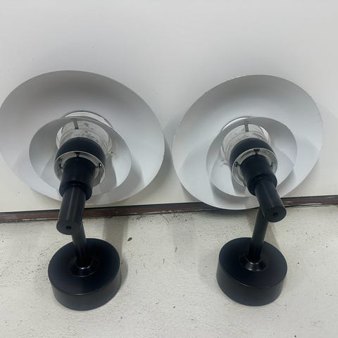2 x PH 3-2½ udendørs væglampe i sort lakeret rustfrit stål. Diameter 30 cm. Fra Louis Poulsen. Original stand uden buler eller skader på maling.