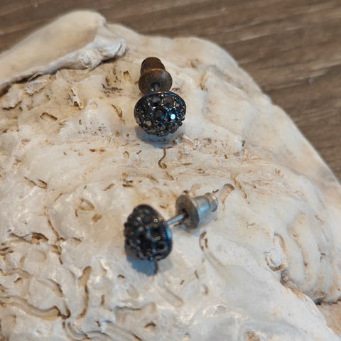 Små firkantede ørestikkere med grå krystal/glas sten.