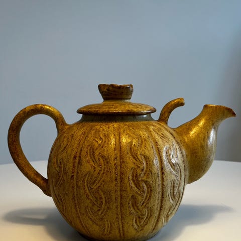 Retro / vintage, tekande i keramik med blå /ultramarin glasur.