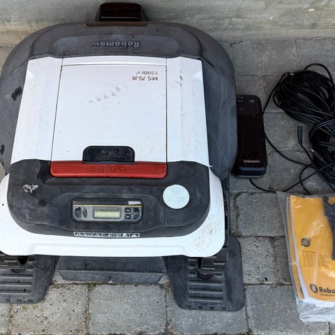 Motor kører ujævnt, 4 nye knive, oplader og garage. 100kr. Pr. Ny kniv, samlet 600,- kr.