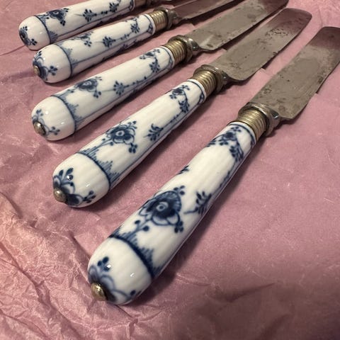 5 Royal Copenhagen Musselmalet Riflet Knive (defekte)