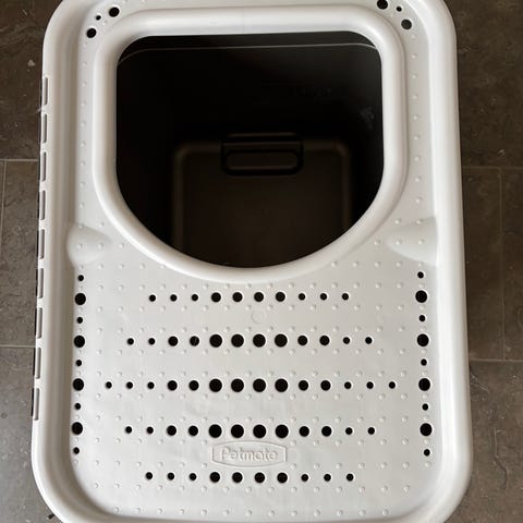 Petkit Pura X automatisk kattetoilet i hvid. Lukket, kugleformet kattebakke med indbygget vægt og digital display i bunden til registrering af kattens vægt og brug af toilettet. Enheden har automatisk selvrensningsfunktion, der kan styres via app, hvor data som kattevægt, antal toiletbesøg og rengøringsstatus kan aflæses. Velegnet til brug med klumpende kattegrus og til katte, der kan benytte lukkede, automatiske toiletter.