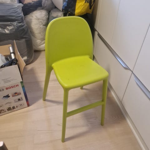 IKEA børnestol i hvidmalet træ. Stolen har høj ryg med krydsdetalje og faste tværstivere som fodstøtte. Egnet til børn, fx ved spisebord, skrivebord eller i børneværelset. Klassisk design, der passer ind i de fleste indretninger.