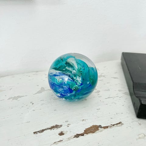 Håndblæst glaskugle med dekoration. 5 cm i diameter.