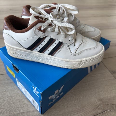 Adidas Rivalry Mid sneakers i størrelse 46. Modellen er en mid-cut sneaker i hvid farve med snørelukning. Overdelen fremstår i glat materiale med de karakteristiske tre striber i siderne og perforeringer ved tå og sider for ventilation. Skoene har polstret skaft og tunge for komfort samt gummisål med mønster for greb. Velegnet som hverdagssko og fritidssko.