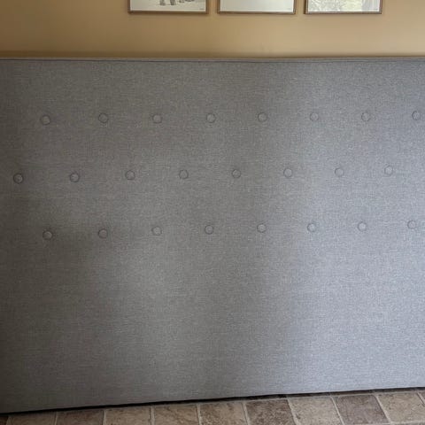 Ellos sengegavl i grå farve. Polstret gavl i velour med knapdetaljer, beregnet til montering bag sengen for støtte og som ryglæn. Velegnet til soveværelseindretning, hvor der ønskes en blød og polstret afslutning ved hovedenden af sengen. 120 cm