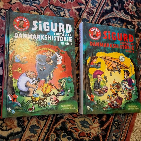 Sigurds danmarkshistorie, brætspil og bøger. Fantastisk formidling både i spil og bog. Vi fik det da vores børn var lidt for store, så kun brugt en enkelt gang.