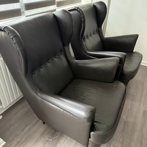 Strandmon lænestol fra Ikea i Nordvalla mørkegrå. Købt i november 2025 - kvittering medfølger!
