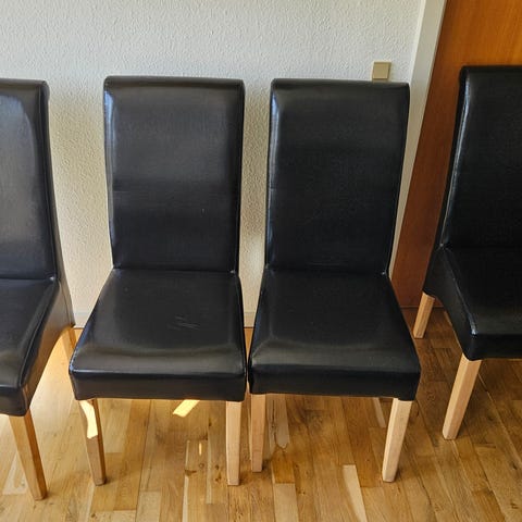 4 stk flotte sorte læder spisebordsstole med drejefunktion og hæve sænke mulighed