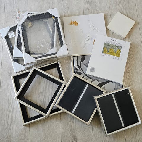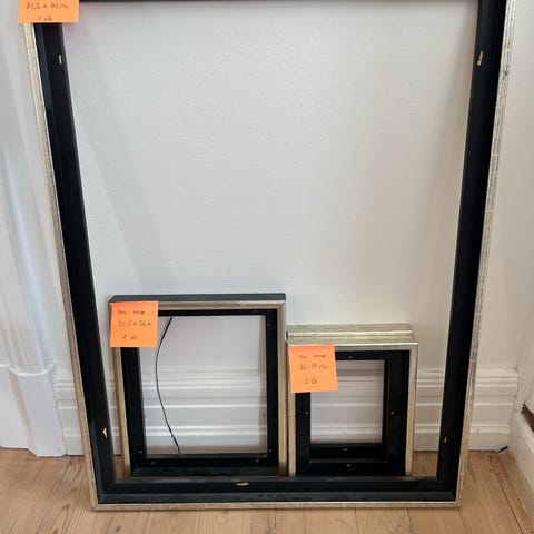 Galleri, svæve rammer, Fra ophør : 30 stk. galleri på svæveramme , med 3 forskellige motiver 4x34x34 cm udvendig - blændrammen er 30 x 30 cm . Sælges samlet til 600 kr. eller i mindre antal ( a minimum 8 stk hvis de skal sendes ) til 25 kr. /stk. - Henv. 40426818