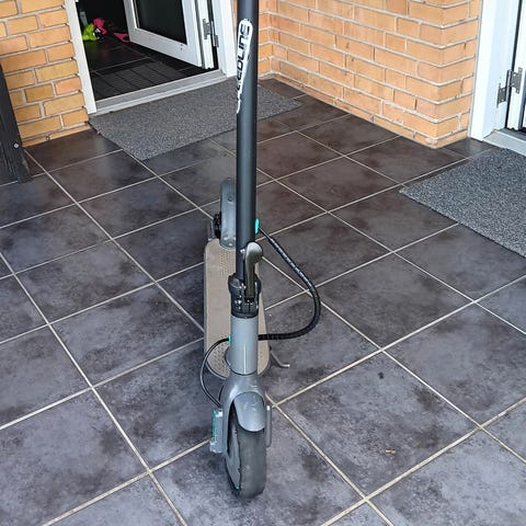 Løbehjulet er kendt for sit unikke design, hvor batteriet sidder på styret. Det gør det super nemt at tage batteriet med ind og lade op, mens selve løbehjulet står i skuret eller opgangen.